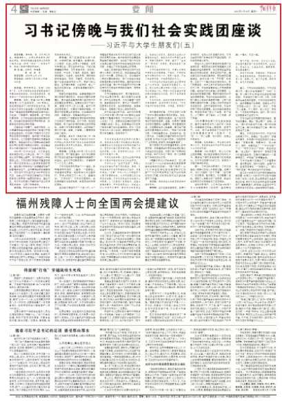 《福建日报》以《向社会学习 向人民大众学习——北大学生社会实践团圆满结束在榕活动返京》、《福州晚报》以《北大学生赴榕社会实践团举办汇报会——习近平同志同他们进行长时间亲切交谈》为题,分别在头版对此次座谈会进行了报道。